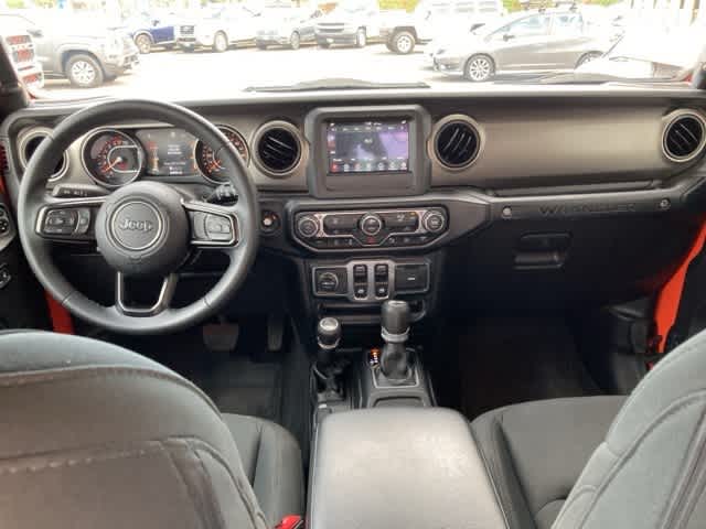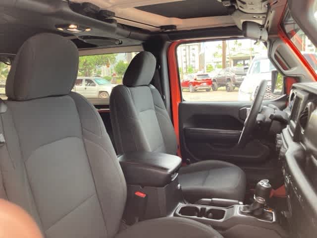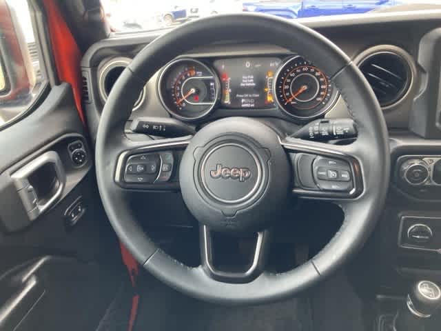 1-Year SiriusXM Radio Service, 3.45 Rear Axle Ratio, 4-Wheel Disc Brakes, 7.0 Touchscreen Display, 8 Speakers, ABS brakes, Air Conditioning, Air Conditioning w/Auto Temperature Control, Air Filtering, AM/FM radio, Anti-Spin Differential Rear Axle, Apple CarPlay, Automatic Headlamps, Black 3-Piece Hard Top, Blind Spot & Cross Path Detection, Brake assist, Bridgestone Brand Tires, Cloth Low-Back Bucket Seats, Cluster 7.0 TFT Color Display, Compass, Deep Tint Sunscreen Windows, Delay-off headlights, Driver door bin, Driver vanity mirror, Dual front impact airbags, Dual front side impact airbags, Electronic Stability Control, For More Info, Call 800-643-2112, Freedom Panel Storage Bag, Front 1-Touch Down Power Windows, Front anti-roll bar, Front Bucket Seats, Front Center Armrest w/Storage, Front fog lights, Front reading lights, Google Android Auto, GPS Antenna Input, Injection Molded Black Rear Bumper, Integrated Center Stack Radio, Integrated roll-over protection, Leather Wrapped Steering Wheel, LED Taillamps, Low tire pressure warning, Manufacturers Statement of Origin (DISC), MOPAR All-Weather Floor Mats, MOPAR American Flag Hood Graphic, MOPAR Black Tube Steps, MOPAR Hardtop Headliner, No Soft Top, Non-Lock Fuel Cap w/o Discriminator, Normal Duty Suspension, Occupant sensing airbag, Outside temperature display, ParkSense Rear Park Assist System, ParkView Rear Back-Up Camera, Passenger door bin, Passenger vanity mirror, Power Heated Mirrors, Power steering, Quick Order Package 24S Sport S, Radio data system, Radio: Uconnect 3 w/5 Display, Radio: Uconnect 4 w/7 Display, Rear anti-roll bar, Rear reading lights, Rear Window Defroster, Rear Window Wiper/Washer, Remote Keyless Entry, Safety Group, Security Alarm, SiriusXM Satellite Radio, Speed control, Speed Sensitive Power Locks, Steering wheel mounted audio controls, Sun Visors w/Illuminated Vanity Mirrors, Tachometer, Technology Group, Telescoping steering wheel, Tilt steering wheel, Traction control, Trip computer, USB Host Flip, Variably intermittent wipers, Wheels: 17 x 7.5 Black Steel Styled, Wheels: 17 x 7.5 Tech Silver Aluminum.