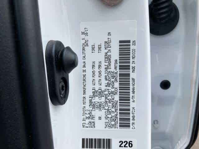 4WD, 6 Speakers, ABS brakes, Air Conditioning, Alloy wheels, AM/FM radio: SiriusXM, Anti-whiplash front head restraints, Auto High-beam Headlights, Auto-dimming Rear-View mirror, Axle Ratio: 3.91, Brake assist, Bumpers: body-color, CD player, Compass, Driver door bin, Dual front impact airbags, Dual front side impact airbags, Electronic Stability Control, Exterior Parking Camera Rear, Front anti-roll bar, Front Bucket Seats, Front Center Armrest, Front fog lights, Front reading lights, Front wheel independent suspension, Illuminated entry, Knee airbag, Low tire pressure warning, Occupant sensing airbag, Outside temperature display, Overhead airbag, Overhead console, Panic alarm, Passenger door bin, Power door mirrors, Power steering, Power windows, Radio: Entune Premium w/AM/FM/CD/Nav/App Suite, Rear step bumper, Remote keyless entry, Speed control, Speed-sensing steering, Split folding rear seat, Steering wheel mounted audio controls, Tachometer, Telescoping steering wheel, Tilt steering wheel, Traction control, Trip computer, Variably intermittent wipers, 4WD.