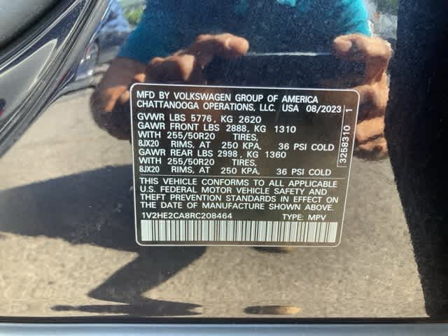 3.60 Axle Ratio, 4-Wheel Disc Brakes, 4-Wheel Independent Suspension, 6 Speakers, ABS brakes, Air Conditioning, Alloy wheels, AM/FM radio: SiriusXM with 360L, Auto-dimming Rear-View mirror, Automatic temperature control, Brake assist, Bumpers: body-color, Compass, Delay-off headlights, Driver door bin, Driver vanity mirror, Dual front impact airbags, Dual front side impact airbags, Electronic Stability Control, Emergency communication system: VW Car-Net Safe & Secure 5-year, Exterior Parking Camera Rear, Four wheel independent suspension, Front anti-roll bar, Front Bucket Seats, Front Center Armrest, Front dual zone A/C, Front fog lights, Front reading lights, Fully automatic headlights, Heated & Actively Ventilated Front Seats, Heated door mirrors, Heated front seats, Heated steering wheel, Illuminated entry, Low tire pressure warning, Occupant sensing airbag, Outside temperature display, Overhead airbag, Overhead console, Panic alarm, Passenger door bin, Passenger vanity mirror, Perforated V-Tex Leatherette Seating Surfaces, Power door mirrors, Power driver seat, Power Liftgate, Power steering, Power windows, Radio data system, Radio: MIB3 Composition Media AM/FM/HD, Rain sensing wipers, Rear anti-roll bar, Rear reading lights, Rear seat center armrest, Rear window defroster, Rear window wiper, Remote keyless entry, Security system, Speed control, Speed-sensing steering, Split folding rear seat, Spoiler, Steering wheel mounted audio controls, Tachometer, Telescoping steering wheel, Tilt steering wheel, Traction control, Trip computer, Turn signal indicator mirrors, Variably intermittent wipers, Ventilated front seats, Wheels: 20 5-Spoke 2-Tone Machined Alloy.